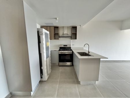 -Cocina moderna con línea blanca incluida (estufa, horno, nevera)