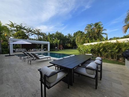 Disfruta de unas vacaciones exclusivas en esta impresionante villa recién construida, ubicada en la prestigiosa zona de Casa de Campo, cerca de las paradisíacas playas Minitas. Con un diseño moderno y lujoso, la villa cuenta con 5 amplias habitaciones, ideales para acomodar a grandes grupos o familias. Su terraza con vistas panorámicas y un estudio perfecto para relajarte o trabajar desde un entorno natural ofrecen una experiencia única.